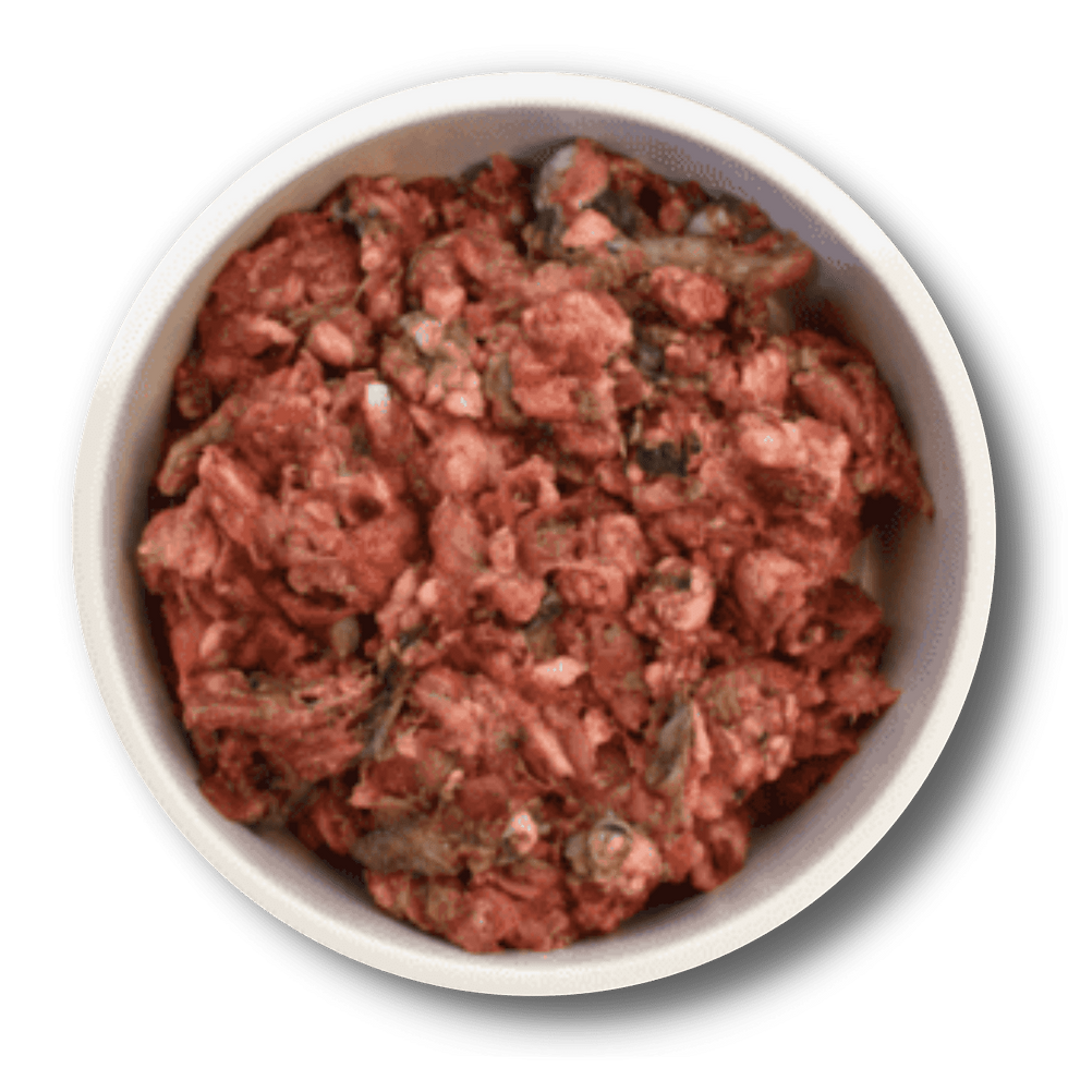 Composition: 30% Venison, 20% Ox, 20% Ox Hearts, 10% Duck, 10% Duck Bones, 10% Ox Offal
